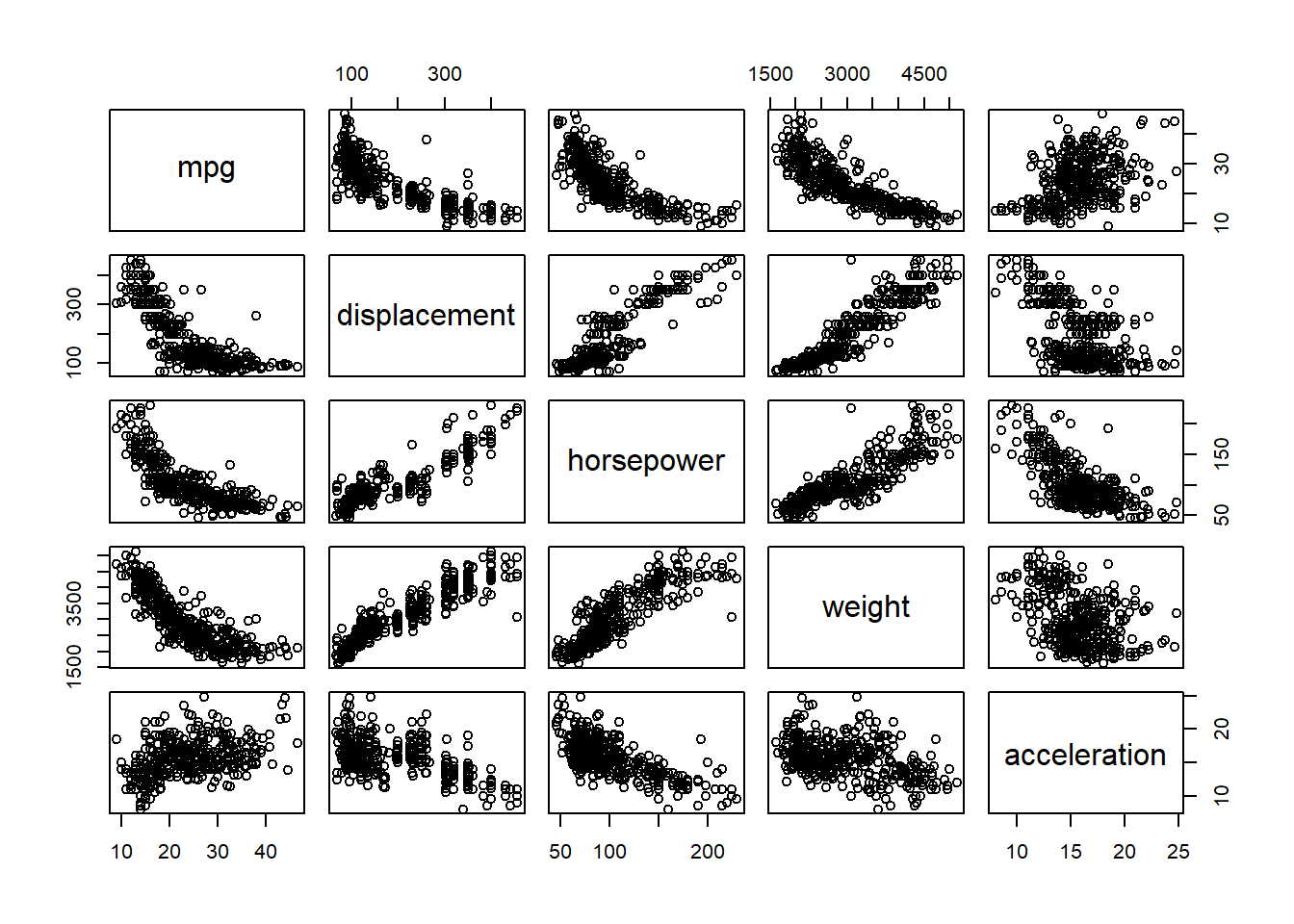 [1] "mpg" "cylinders" "displacement" "horsepower" "weight"